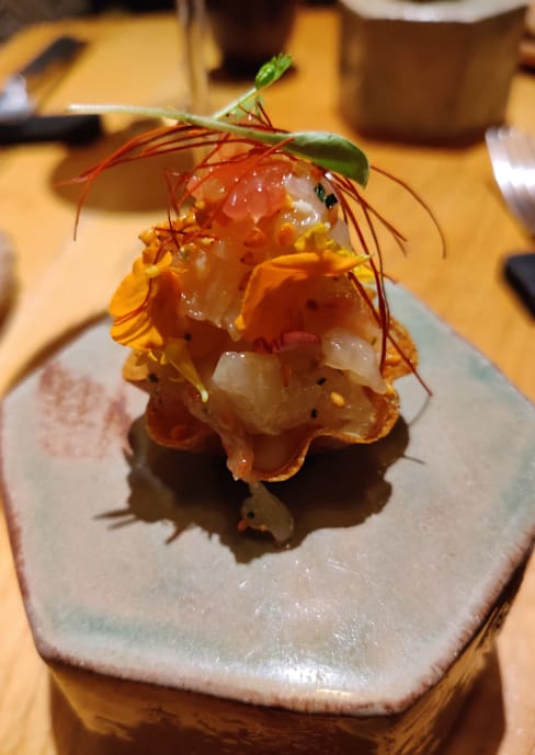 8.5/10+6A delicious tasting menu inspired by many different flavors , lot of Asian flavors. Some super unique dishes like the smoked eel crunch flower. Food flow was a little erratic when the restaurant got busy. I would highly recommend to do the tasting menu here. It was exceptional.