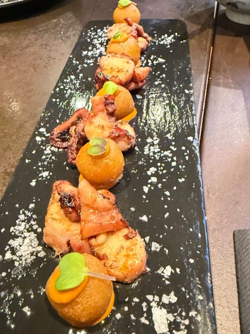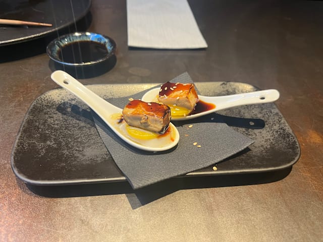 7/10We booked a table at 22h30, when we got there we ordered the degustation menu. We were told it was not available because the kitchen was closing. However, when we booked the table, we were not informed we weren’t going to be able to eat what we wanted. We ended up eating only sushi. The fish was fresh, but the variety was poor, the cut was badly made (sashimi slices almost the size of a napkin and nigiris that crumbled when touched). It looked like a rushed job to get something to the table. The coffee at the end was very bitter. The staff was nice and attentive, but the end result on the plate was lacking.