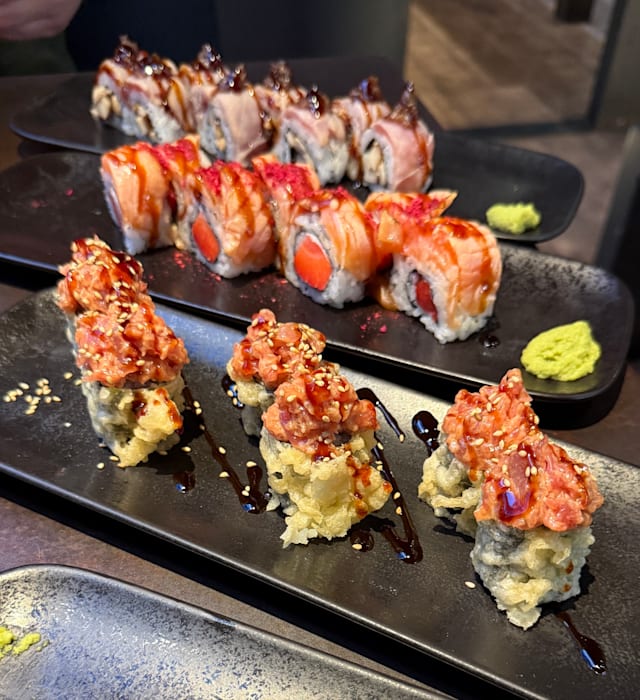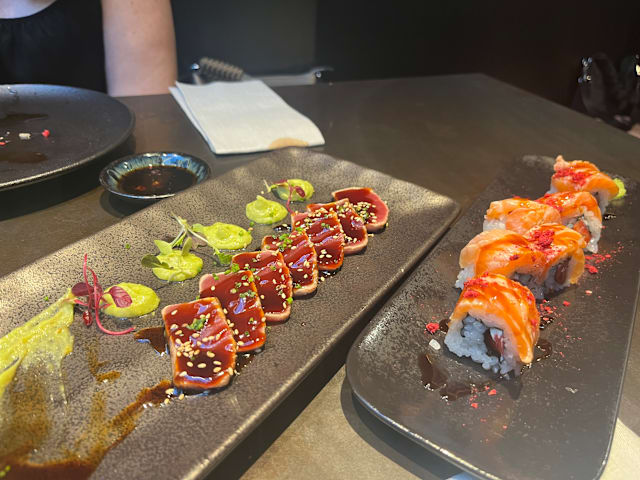 8/10I had high expectations for the sushi, but the rice was not tasty. The taste of the sashimi was not the best. The vegetable gyozas were tasty but lacked stuffing. The service was excellent, and the ambiance was nice as well. We enjoyed the night, but we will be looking for other options in the future