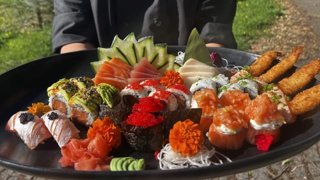20 uramakis, 8 hosomakis, 16 sashimis, 8 hots, 4 gunkans e 4 nigiris.