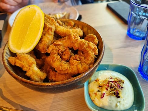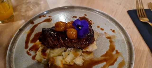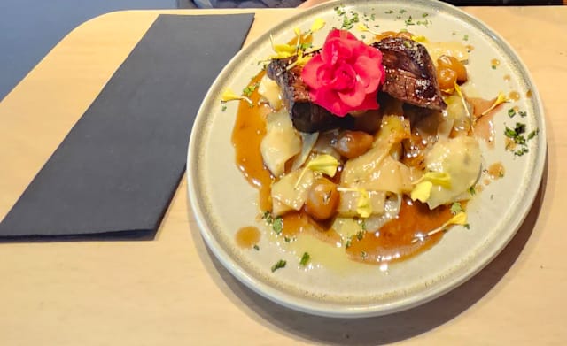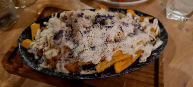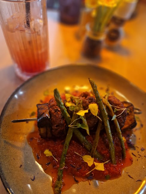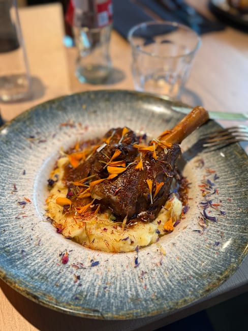 8.5/10The ambiance is stylish yet comfortable, and the food presentation was great. However, the menu felt inconsistent—some mains come with regular sides (like codfish or octopus), while others, like the chicken, arrive with just mushrooms. There’s no option to order sides separately, which makes it hard to complete a meal without doubling up on dishes. The vegetarian options sounded the most appealing and well-rounded. Service was friendly, but surprisingly slow, even though the restaurant wasn’t busy. Overall, the place has potential, but a more consistent menu and quicker service would really elevate the experience.