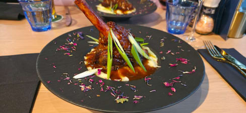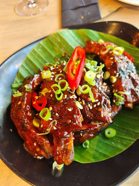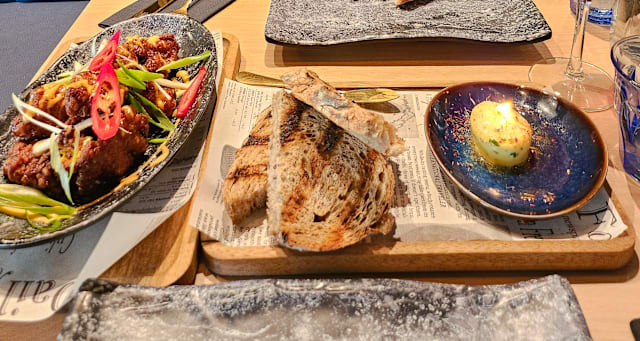 10/10+2Food was excellent! Ambience and service were great! Loved the exquisite taste of the butter that goes along with the bread. The crunchy ink is sure one we'll be ordering again. The shortribs ... were to die for. The tempura tiger prawns looked sooo darn amazing... All in all, it was a great experience.