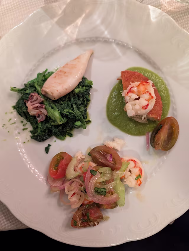 - Scampo, gambero rosso, tartare, carpacci misti, ricci, cannolicchi, ostriche e tartufi di mare