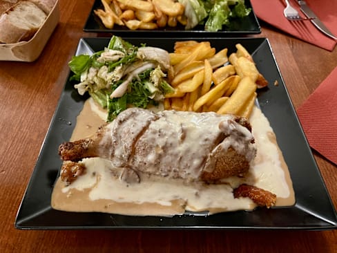 9/10A lovely little restaurant off the beaten path with very traditional French food. A new menu every day. We had the Cordon Bleu and an amazing fish dish in a Beurre Blanc sauce with a side of risotto. Every bite was delicious. We ate every bite. The chef and owner came out to see how we liked our meal. A lovely dinner. I’d highly recommend! P.S. if you love Absinthe or would like to try it, they offer many different kinds and the owner will show you how to enjoy it. They also offer a flaming Créme Brûlée with Absinthe and an absinthe sorbet.