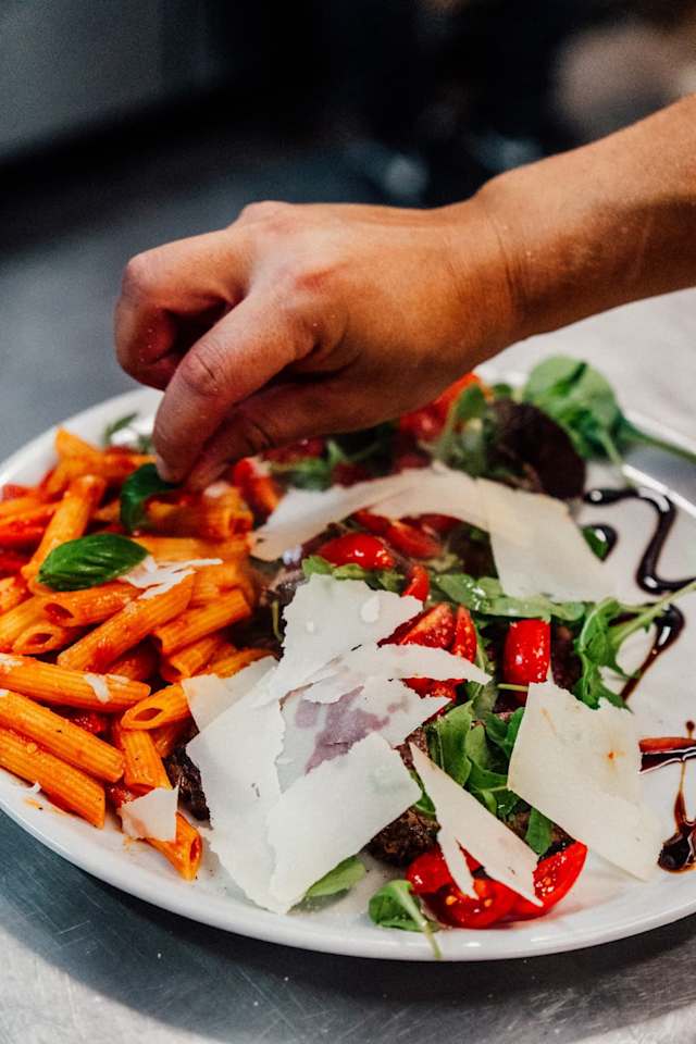 - Focaccia, roquette, tomates cerises, parma doppia corona, copeaux de parmesan, tomates séchées, huile d’olive