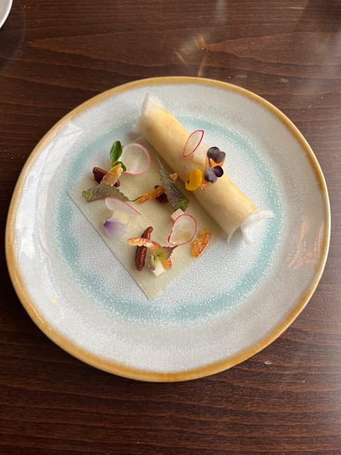 10/10Everything on the plate worked. All the tastes and textures were well thought through. From entrée to dessert, each plate was expertly plated. Elegant and yet simple. Nothing was wasted. All produce was locally sourced and I was provided with an excellent local white wine too. Simply WOW!