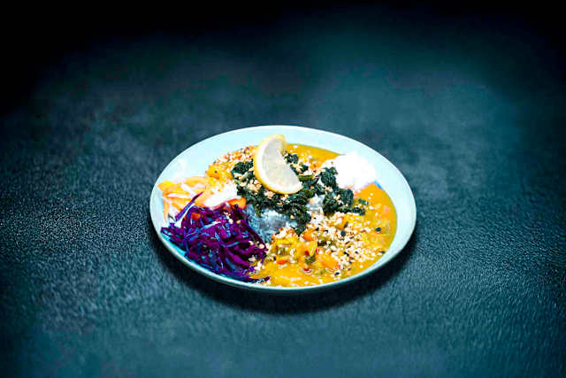 - Curry japonais (légumes de saison) et tsukemono maison (pickles japonais) et noisettes torréfiées