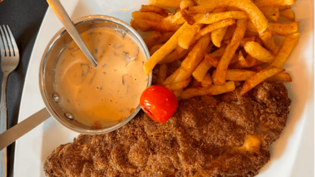 - Plat du jour - escalope de poulet sauce crème champignon frite