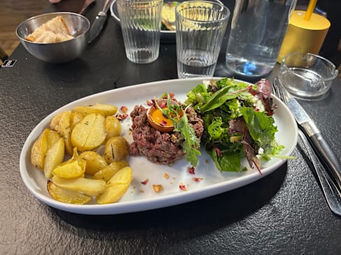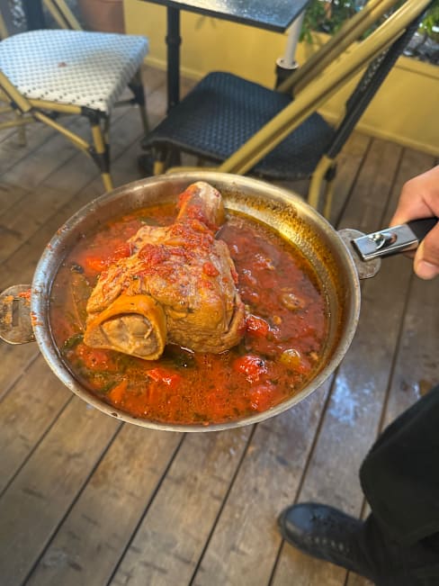 9/10Two of us shared the roast lamb and a Caesar salade on Thursday. Oct. 17, 2024. We ordered two aperitifs to start and passed on immediately ordering. Too soon the waiter was back to take our order. After asking him to return when we finished our aperitifs, he stated he would just take the order and hold it until we were ready. Well foolish us, first he brought the rather expensive wine out before we finished our aperitifs, to taste. From there the food descended upon us in a rather hurried fashion. This took much of the enjoyment from the very finely prepared meal. I think the kitchen and management should know how the waitstaff rushing the diners undermines the dining experience! Perhaps they were more concerned with missing their bedtime! No usual extra gratuity was given for above average service, it was barely average. My fault for not calling a halt to the rush job. And in France, of all countries!