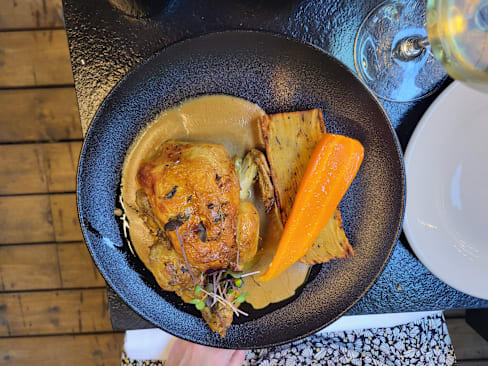 10/10Had the set lunch menu. Delicious! Started with the most unique Caesar salad then the rabbit stew and finished with a decadent chocolate tart. Hubby is vegetarian and loved his gazpacho soup and gyoza. They were both very flavorful and the presentation was wonderful. Our waiter and all the staff were extremely nice. Beautiful dinning room. Highly recommend this gem!