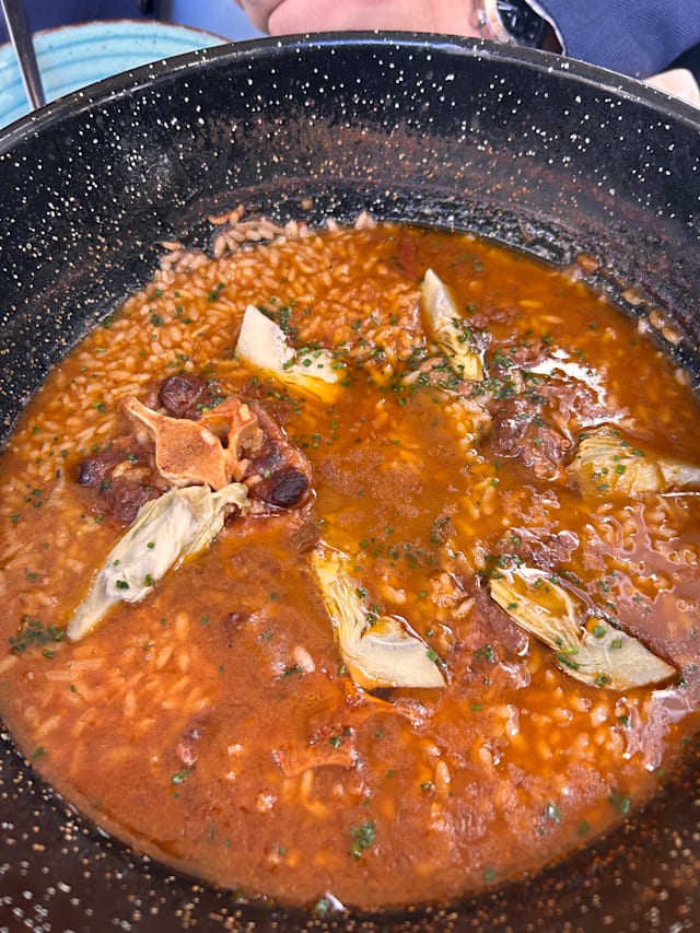 - A la plancha, sobre crema de chirivia y ali oli de ajo negro.