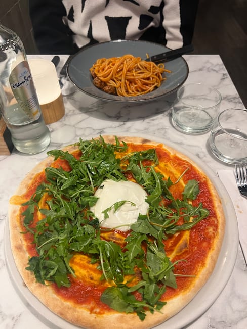 10/10Really nice and modern restaurant! We got a bruschetta, spaghetti bolognese with polpette, the burrata pizza and tiramisu and everything was amazing! The Spaghetti was so tasteful with a really nice sauce and meatballs and the pizza was really easy to eat, the dough was left to completely rise, what makes it such a light thing to have for dinner! The atmosphere was nice with really good service. Definitely coming back!!