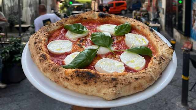 - Base margherita, zucchine marinate alla menta, prosciutto crudo, scaglie di grana