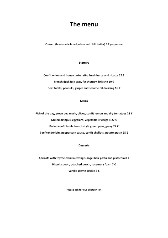 9.5/10Very friendly restaurant with excellent French chef. Thank you for a lovely evening