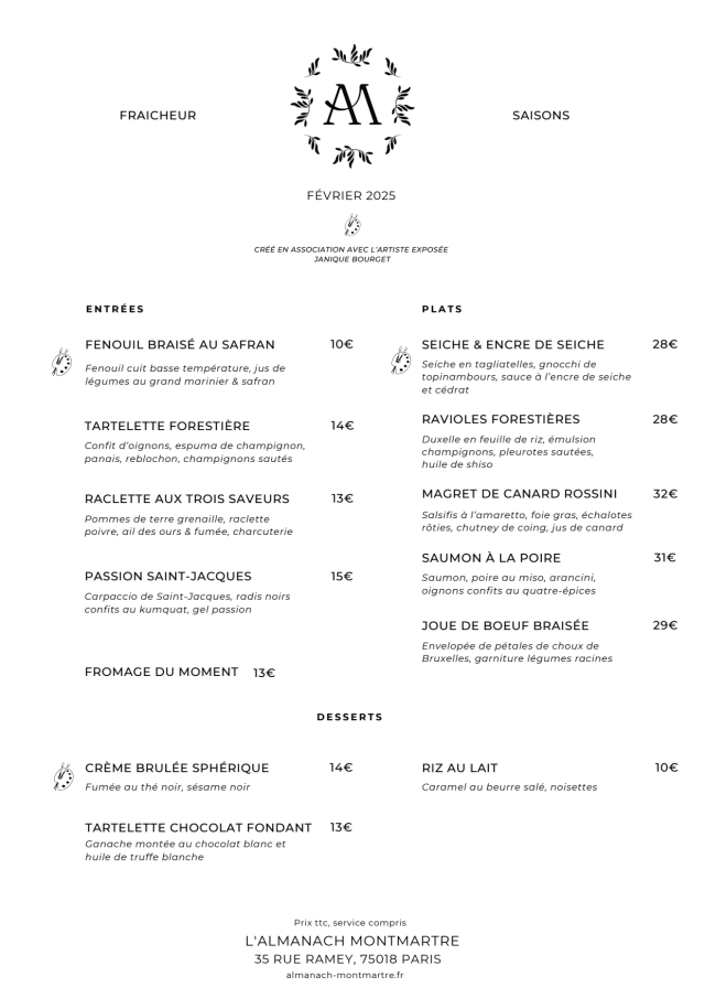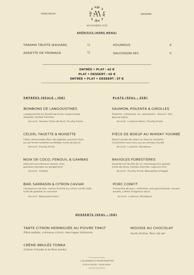 Bonjour Lorena C., We truly appreciate your kind words! It brings us joy to know that our homemade cuisine resonated with you. Our cozy restaurant aims to provide memorable experiences, and we hope to welcome you back for more culinary delights in Montmartre soon. L'Almanach Montmartre