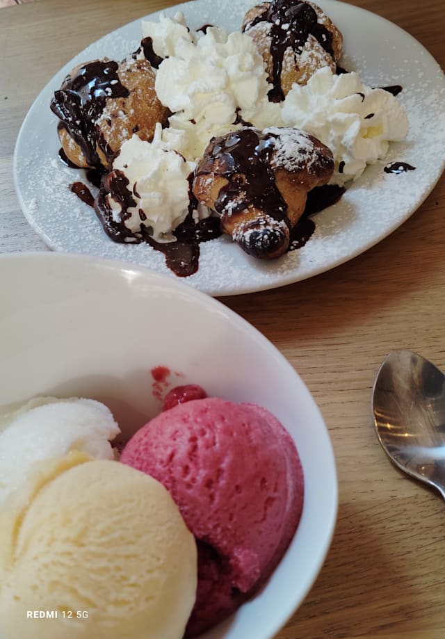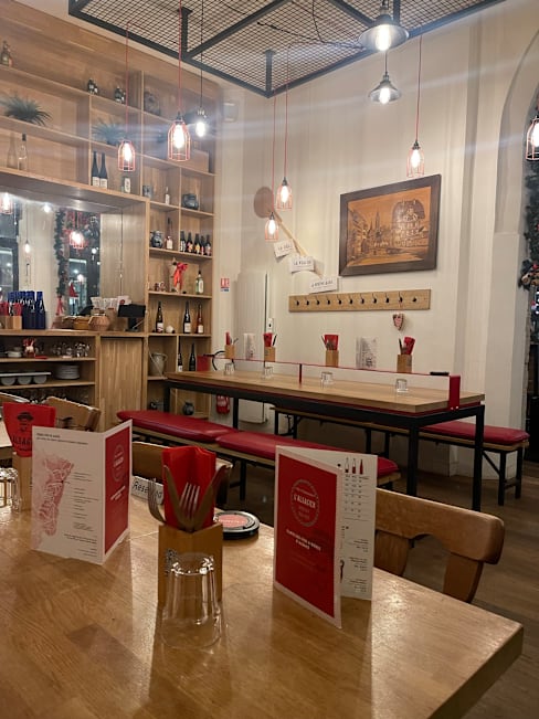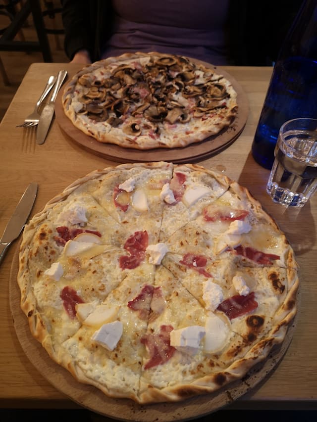2/10We were the only ones in and starter came out cold, when we sent it back staff didn’t seem too happy. The description was sausage and grated potato, it was exactly that, sausage (hot dog!) and a rosti thrown on a plate, We then shared a Flammekueche and were both ill all night!