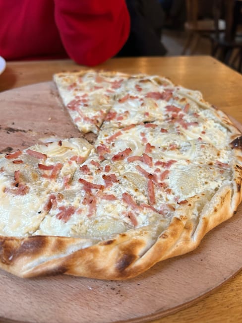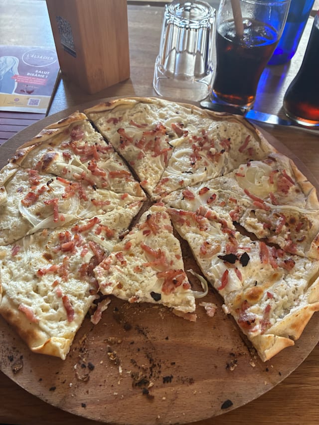 9.5/10Had a great time. sat at a high table for two by the window. Drank some nice beers and shared two different flamenkuch cut in slices one after the other, as advised by the server. So it was like a an apéro très sympa! The flamenkuch are cooked to perfection, they are not heavy, the base is very thin. Will definately return.