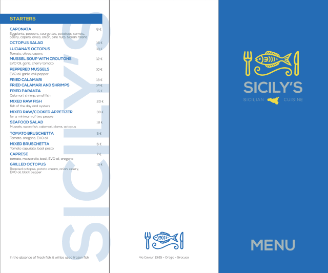 7.5/10Sicily's is a small restaurant located right on Via Cavour, one of the main touristic street of Siracusa's Old Town (Ortigia), but it is not a tourist trap, as the location might make you think! It is family run and it offers a good choice of dishes, both of the local cuisine, mostly focused on seafood and fish, as well as of the more general Italian cuisine. Portions are generous and the quality of food is good. Service is very kind and warm, as you would expect from a family run business. The setting is relatively standard but comfortable. Recommended!