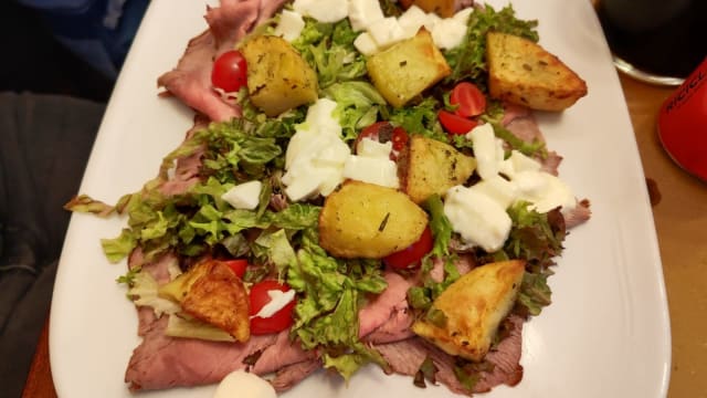 Tris di pecorini stagionati, chutney di mela, scalogno caramellato,pera e cannella, guanciale affumicato, salame corallino,carpaccio di Angus con rucola e mele, crostini con porcini, fegatini di pollo, pomodoro aglio e basilico, radicchio acciugato
