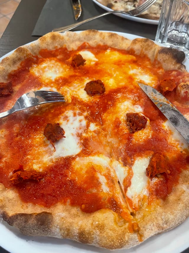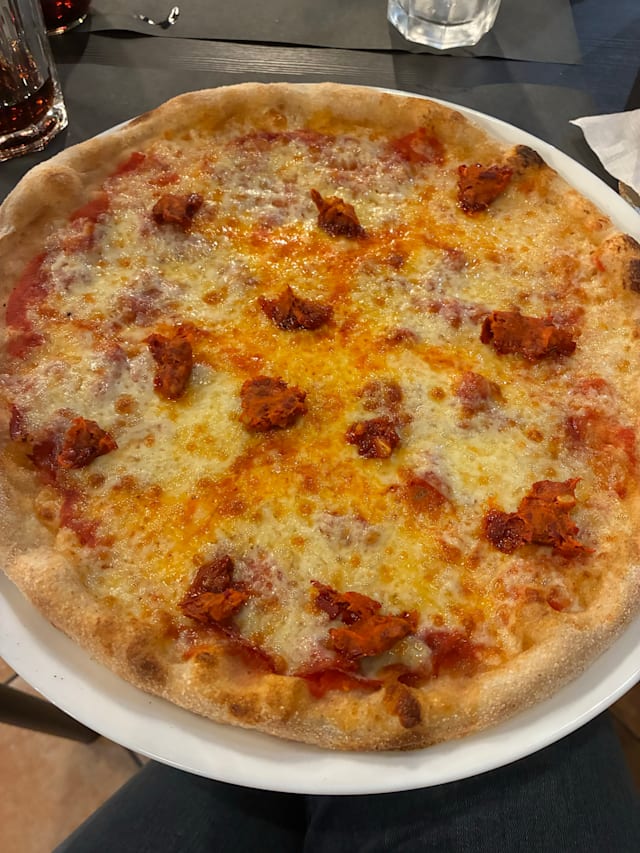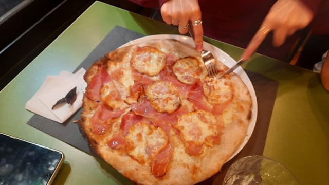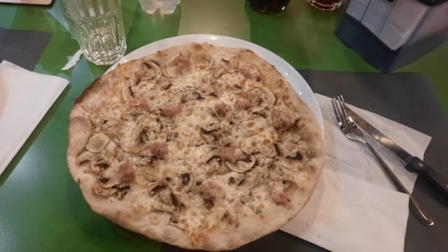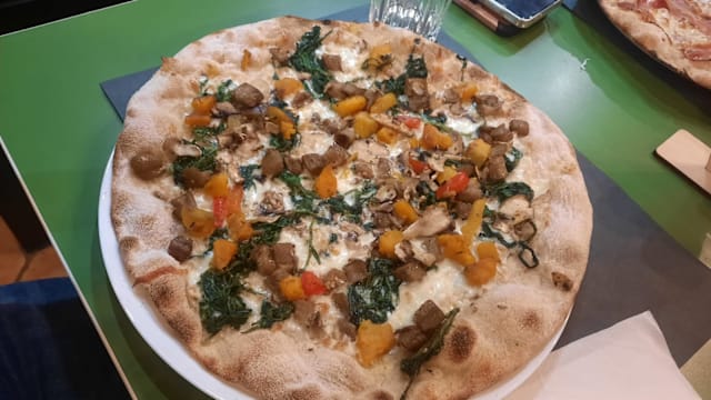 9.5/10Excellent Roman style pizza, thin and crunchy. The simple location and friendly staff, makes it ideal for a night out with friend.