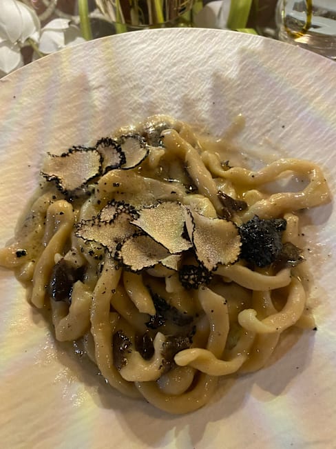 10/10This was a recommendation by a local and it did not disappoint! We shared several dishes and were so impressed. First, the food was outstanding. The chingale (wild boar) pasta was a hit, and then the saffron pasta with almonds was unique and light. The seafood pasta was cooked perfectly and served with plenty of clams and muscles that were cooked perfectly; not overdone or overcooked. The homemade brown bread was wonderful and the red wine from Montalcino was too good to pass up. What was astonishing was that every table in the restaurant was taken on a Monday night and only 2 servers were servicing and they were totally on top of it. Our salads came out quickly and were so fresh and the service was exceptional all around; quick and friendly. Compliments to the chef, who seemed to work solo and whipped up some of the best food we have had in many years. Bravo!