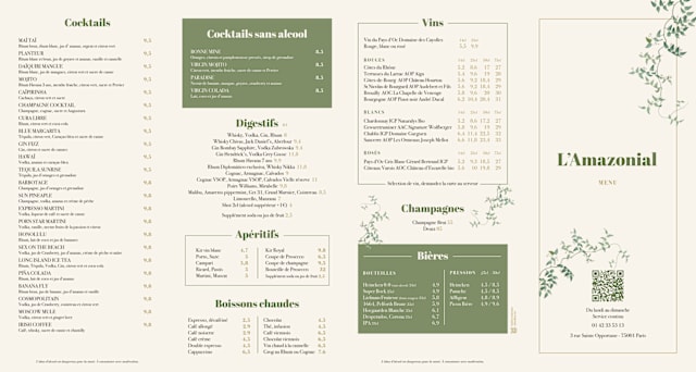 6/10L'Amazonial was my favorite restaurant in Paris for over 20 years, however, this last visit was disappointing. The service was attentive and friendly...however the food quality was poor. I ordered the duck with mashed potatoes. Sadly, the duck was not edible...terribly overcooked an even hard to cut with the provided serrated knife. That said, the mashed potatoes were incredible (but that's not the part of the meal I hoped would be excellent). My five guests also seemed very so-so about their dishes. If I was dining alone or with my husband, then I would have returned my meal, however, when dining in a group I think it's not the right time to make a fuss as it affects the whole group. I think part of the problem is also the changed atmosphere of the entire Les Halle area....a bit loud and boisterous, lots of shady characters. Perhaps I've just gotten to old for this. I much prefer quainter Marais area for my evening outings. Sadly, will not be returning to L'Amazonial.