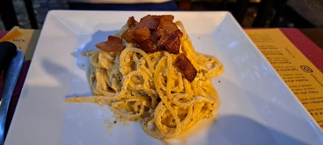 8.5/10Arrived in Rome late at night, so me and my partner had a light pasta meal, very tasty, we was the only ones in the restaurant so there was no atmosphere, quick easy meal