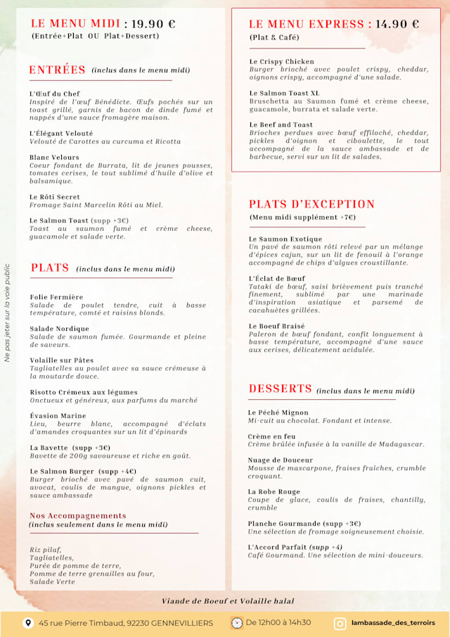 Yes, L'Ambassade des Terroirs has availability on TheFork currently. Do not hesitate, reserve your table on TheFork!