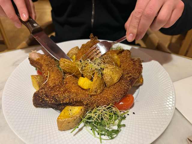 - Milanesa de pollo (350g) con patatas crujientes al romero
