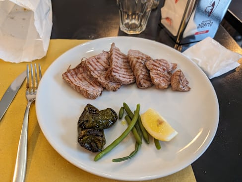 7.5/10It was alright. Probably a good place for a coffee and pastry. The pasta was decent. The meat just tasted of olive oil