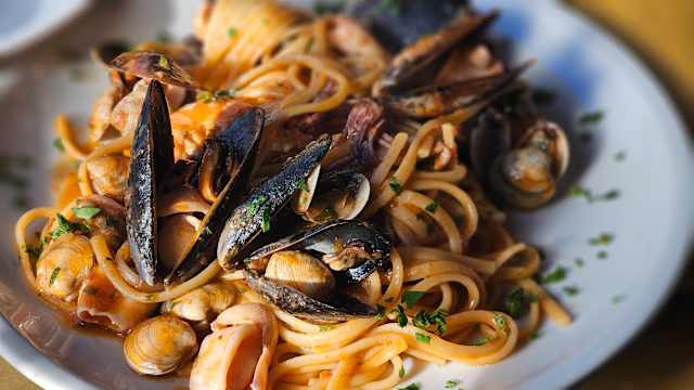 - Pomodoro, origano, gamberetti, cozze, vongole