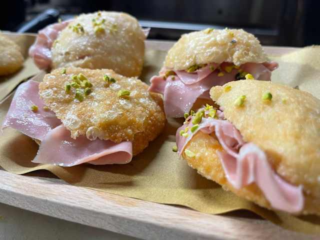 - Tonnarello all’uovo cacio e pepe con tartare di gamberi e pistacchio