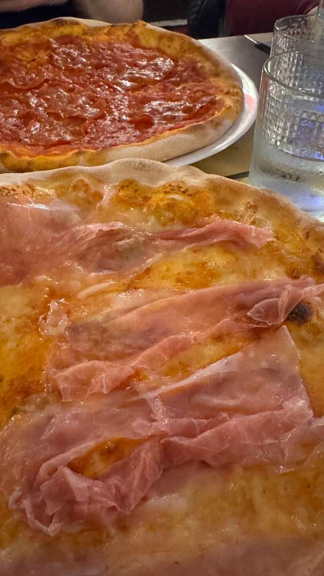 - Pomodoro, mozzarella, spianata calabrese, salsiccia, funghi, zola DOP, rucola, (maionese)