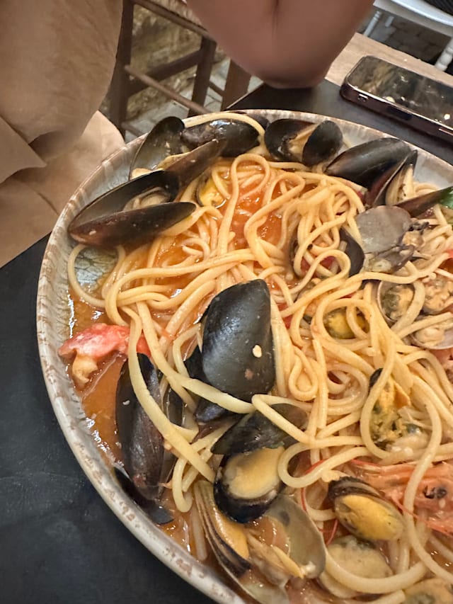 10/10This is an excellent restaurant. The staff is very friendly and helpful. They were very patient with my lack of proficiency with Italian. I really enjoyed the mixed seafood antipasti that included octopus, an oyster, langostos, cozze and a kind of sardine cake. The house wine vino de casa bianco was very different and interesting. I loved it. The traditional Tropean salad with tomatoes and red onions was very good. Paccheri with tuna was delicious. The limoncello they served me at the end of the meal had a very unique flavor that I loved. Highly recommended.