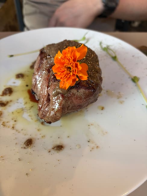 5.5/10I thought 15 Euro for a cocktail was pretty expensive compared to everywhere else we’d been. Sadly we really did not enjoy our steaks at all. However the potatoes were flavourful and I enjoyed the hazelnut horseshoe dessert. There are a few tables where you can enjoy the views