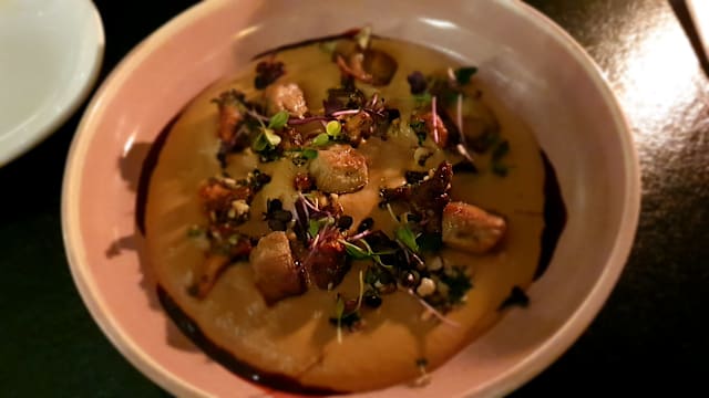 8/10Unfortunately I chose the wrong main, the stuffed lamb. It was lovely and pink but the fat surround was soft and could have benefitted with crisping up. Cocktails were delicious as were the desserts. Service and ambience perfect. Expensive for overall experience.