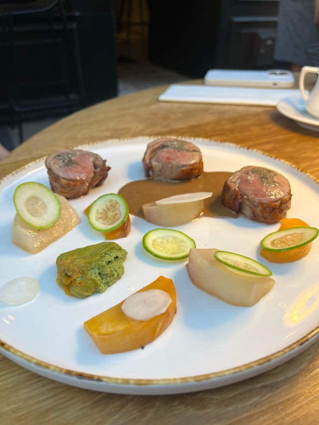 7.5/10Excellent cocktail menu and bar service. Had the chefs assortment at the bar while we waited for an outside table. Great street side eating. Order the lamb main and was good, but the vegetables were soso. Dont order starters for yourself as a main. They are tasty but very rich/salted for one person