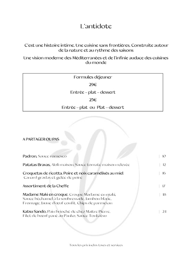 10/10Excellent experience at L’Antidote! The food was fresh, beautifully presented, and full of flavour. The service was attentive and friendly without being intrusive. The atmosphere was cosy and stylish, making it perfect for both casual and special occasions. Highly recommended.