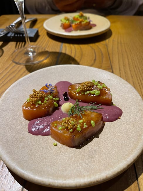 9.5/10+2Intimate lill gem, top products served all very tasty, good wine pairing, nice service. Still more to offer they can be more risky on dishes, deserts good just missed something more citric or fresh to end a lovely night! Recommend 100%