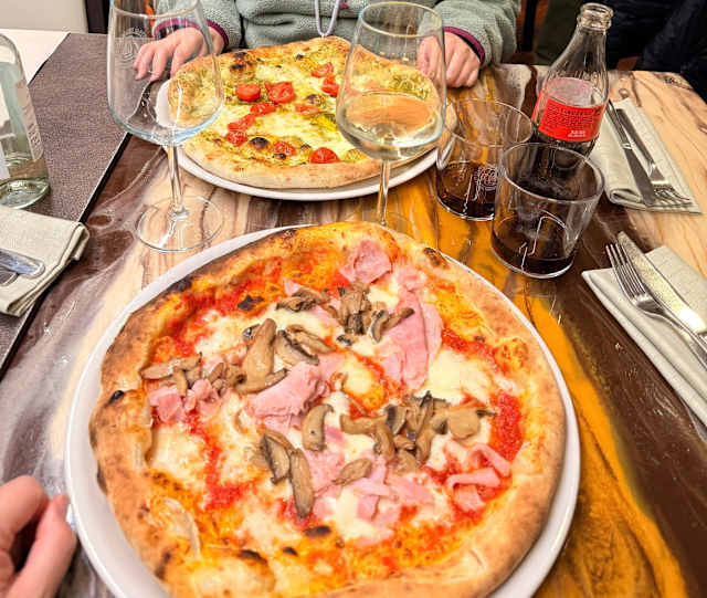 - Pomodoro san marzano, fiordilatte di agerola, olive di gaeta, prosciutto cotto, carciofi, funghi, olio evo, basilico