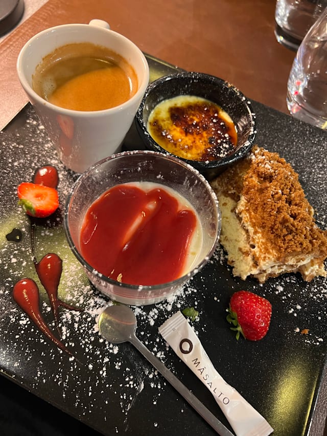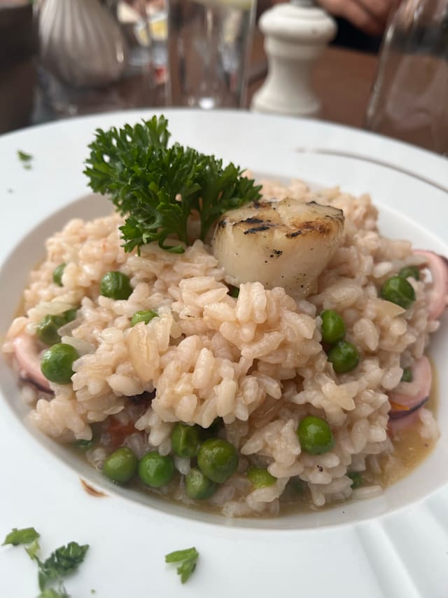 5.5/10too expensive for the food that we ate risotto with st jaque 35 euro and receive 2 st.jaque. two lazania au trufle the one plate one decent quantity the other plate 1/3 of the other plate.. the gave us a table next to the door make us feel that we were not welcome. no pizza for Sunday even for kids ? the restaurant had room many flies. although we visited this restaurant before and we like it a lot today it was the worst experience. Avoid it .