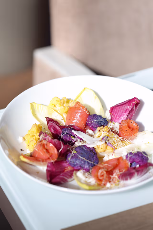- Salade de chou-fleur et saumon mariné à la betterave