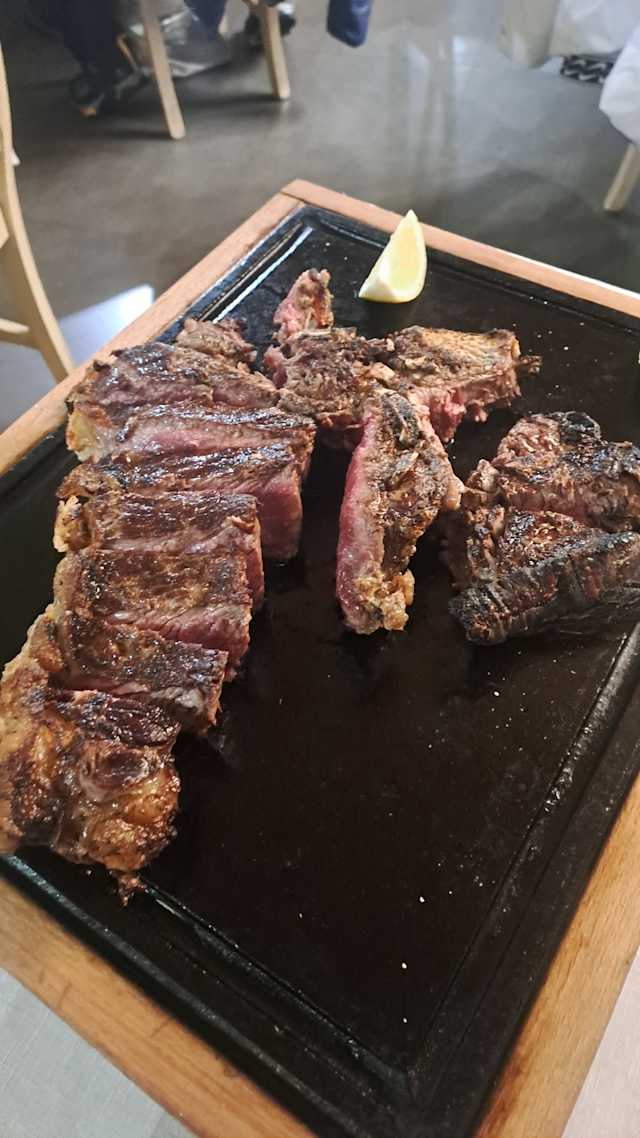 - 600 gr cotta alla brace e servita con rucola fresca e scaglie di grana padano DOP