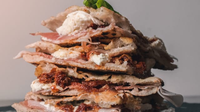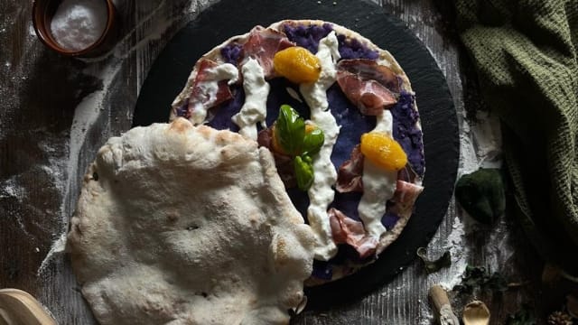 Mortadella di bologna- stracciatella- crema di pistacchio- olio "calissoni bulgari"- sale maldon