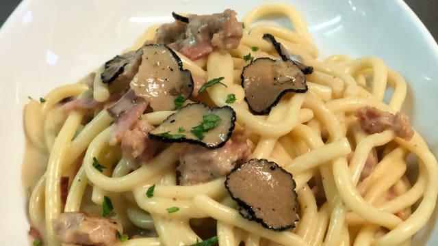 10/10We ordered the red beet pasta and the octopus. Both were delicious. The plates are also very pretty. There is a lovely outdoor seating area. The bathroom is also nice.