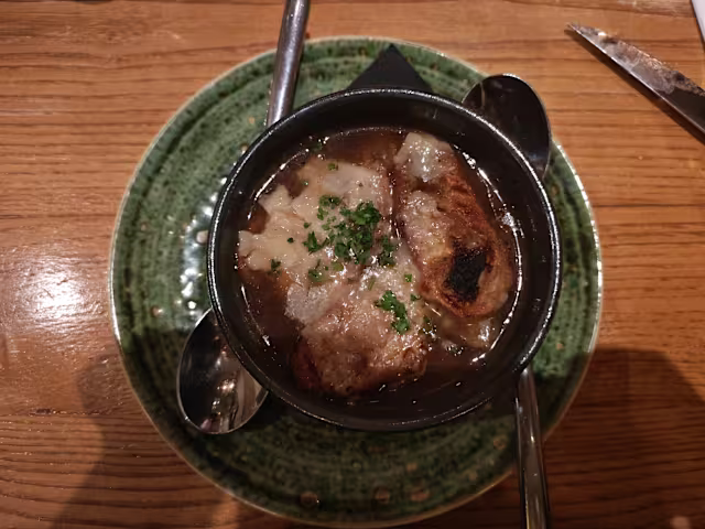 - Soupe à l’oignon gratinée au vieux rodez