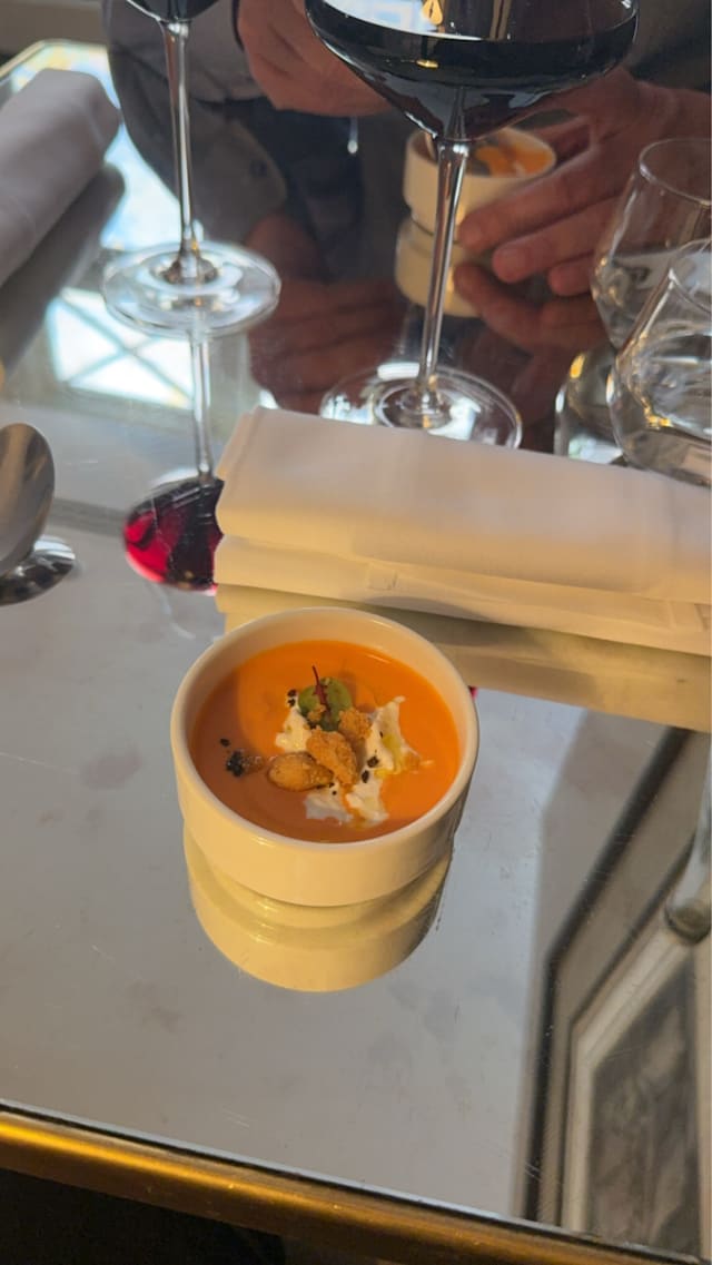 3.5/10We came for dinner and waited 50 minutes for a glass of wine. No bread or amuse bouche was offered. Finally the wine was brought in dirty glasses with traces of someone's lips and saliva. It was disgusting. The glasses were replaced, but after that everything else was unpleasant to eat. The atmosphere was spoiled, sorry