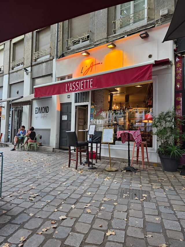 10/10We really enjoyed our meal at L'Assiette sur la Place. Beautiful day to eat outside in a pleasant setting, great Lyonnaise food, terrific wine, nice service and a special surprise at the end. Recommended.