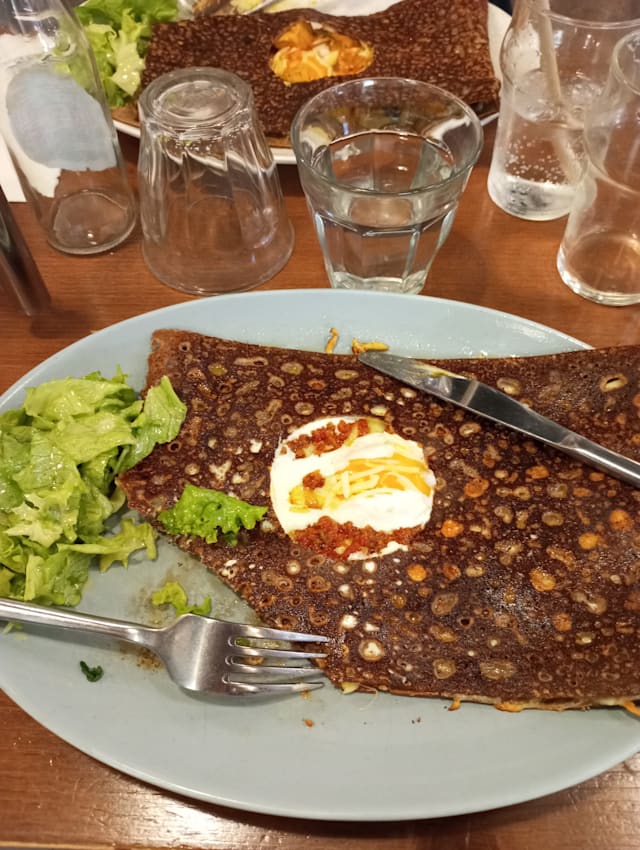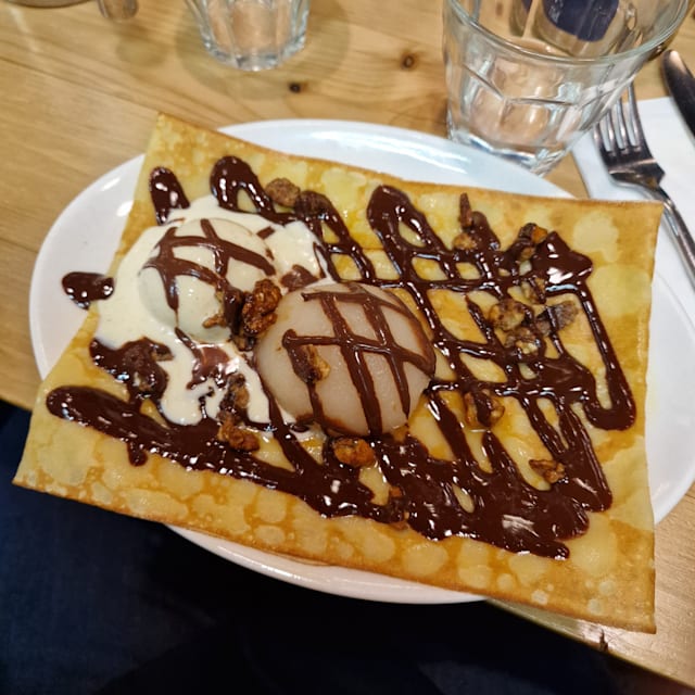 7.5/10Galletes and crepes are nice. Drinks are way too expensive and there's not much choice Our waitress didn't look happy to serve us and she didn't give us enough information about the tap beer so we ended up ordering a beer that we didn't like