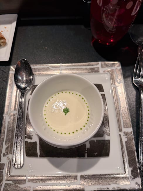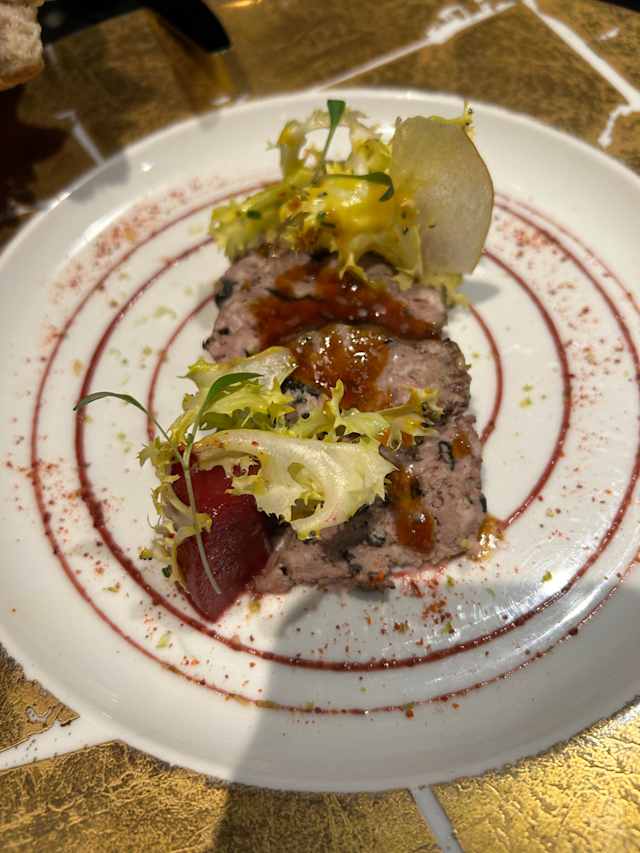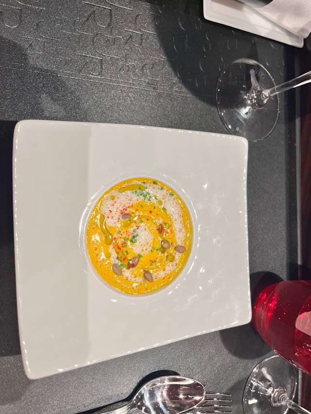 10/10Our experience began with descending a spiral staircase landing in a stunningly beautiful and trendy dining space. Our dining experience was led by our waiter, Angelique and the restaurant sommelier, Patrice. They helped us navigate their dinner menu and wine list, resulting in a selection of small plates and a French Pinot Noir that paired well. We enjoyed the diverse textures and flavors in each dish and came away fully satisfied.